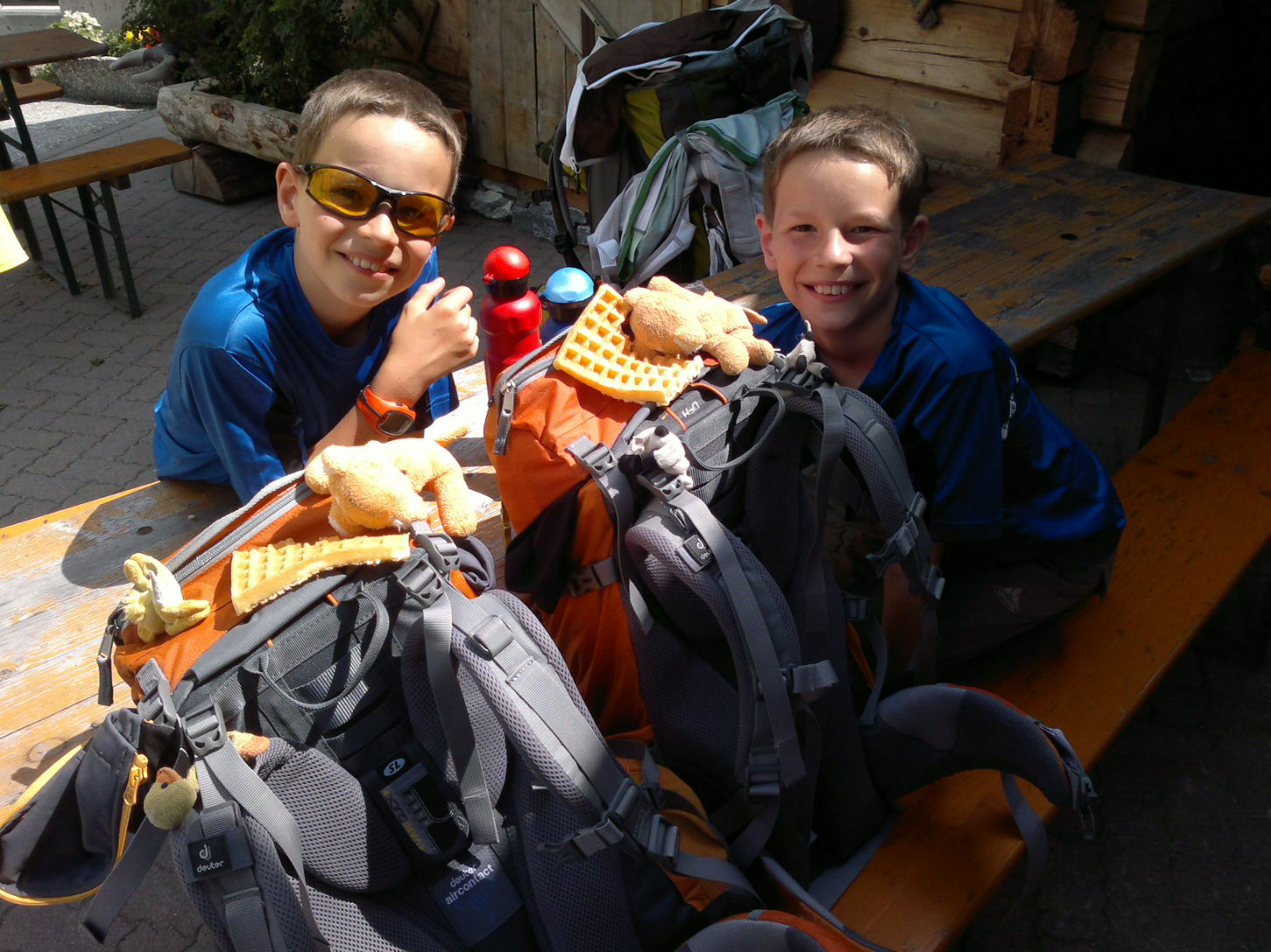 Ausschlafen!!! Das haben wir heut morgen als 1. gemacht! Bis 9 Uhr himmliche Ruhe. Sonst waren wir um diese Uhrzeit schon fast am losmaschieren… zum Frühstück bekamen die 2 sogar einen kleinen Schoko Kuchen, mit Kerzen verziert, vom Kellner serviert!!! Sehr aufmerksam…den heben wir uns für später auf! Wieder oben im Zimmer werden die 2 dann doch ungeduldig, ob der Papa, der gestern abend extra zum Geburtstag hinzukam, nicht doch eine Kleinigkeit im Tankrucksack versteckt
