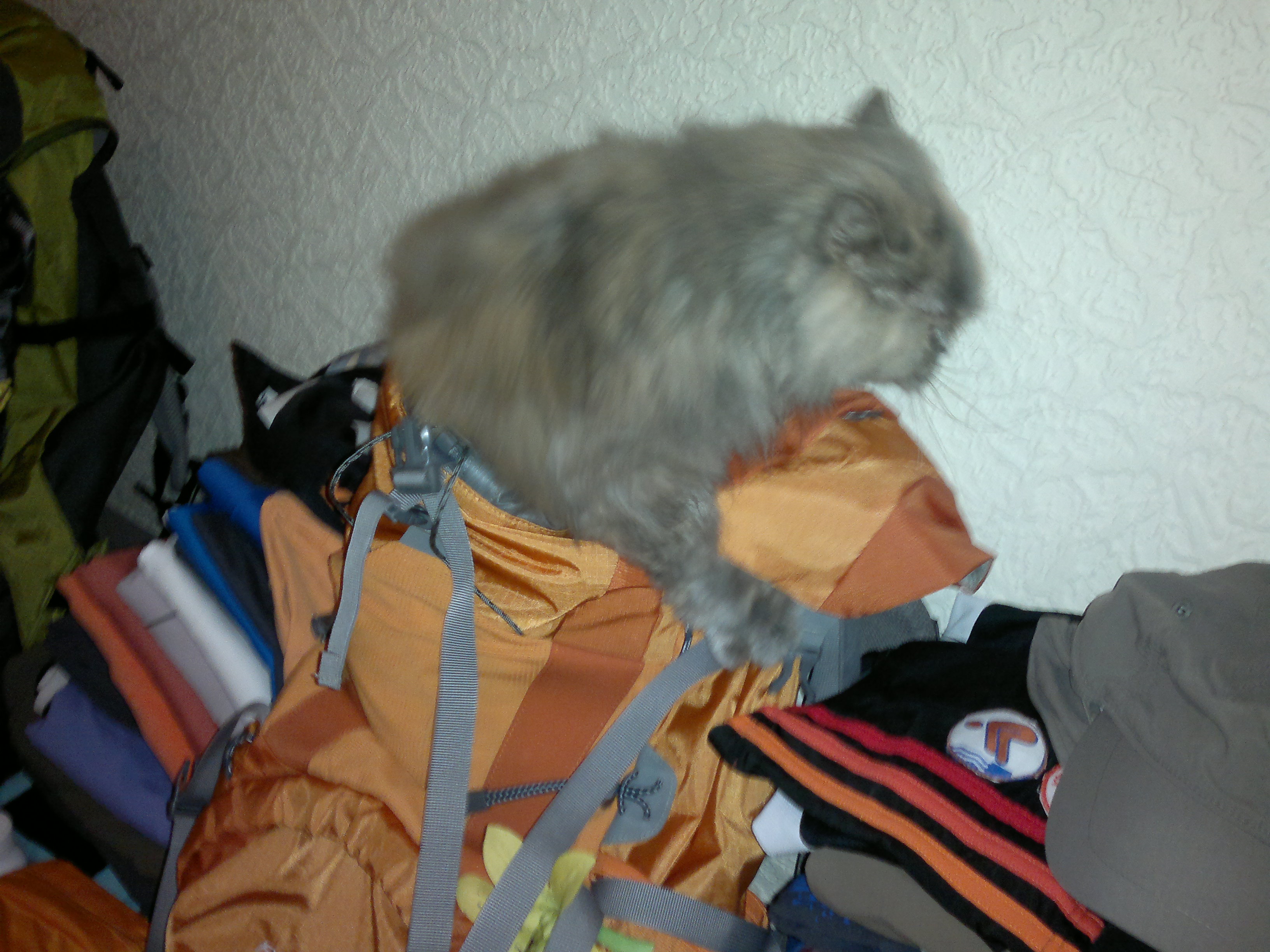 So – dass werden jetzt unsere treuesten Begleiter für die nächsten 2 Wanderwochen. Und DA sollen jetzt all‘ unsere Klamotten reinpassen???? Ach herje….ich glaub, ich muß unsere Kleider-Ordnung nochmal überdenken!!