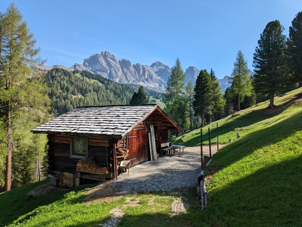 In der kleinen wunderschönen alten Hütte vom Walter aus dem Jahr 1984 steht richtig viel Arbeit an. Er renoviert sie innen komplett. Ein Schlafzimmer hat er abgetrennt, was vorher Schuppen war, das kleine Klo wird auf die andere Seite gesetzt…und alle 3 Räume incl. Küche mit Esszimmer sollen mit selbstgeschnittenen Zirben Holz Bretter, von seinen eigenen Wiesen, verkleidet werden. Das wird bestimmt auch suuuuper und wieder biete ich mich sofort zum mit anpacken an. Walter stimmt sofort zu, dass ich um 9 Uhr da sein soll…. Aber gerne Arbeiten auf der Alm, genau das wollte ich so gerne 殺.