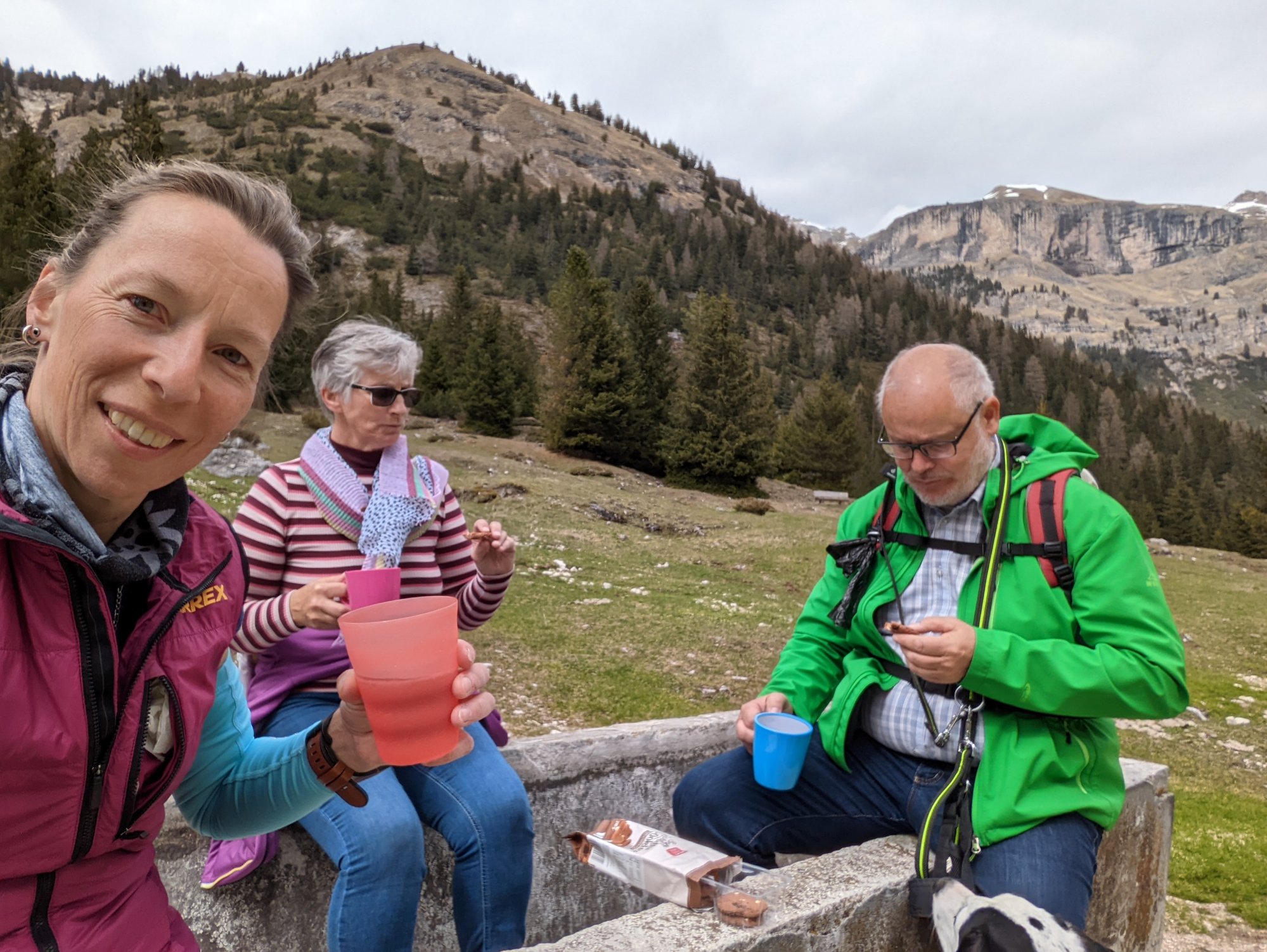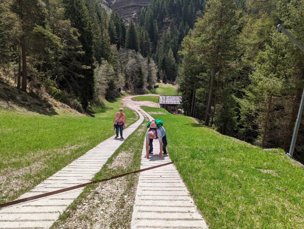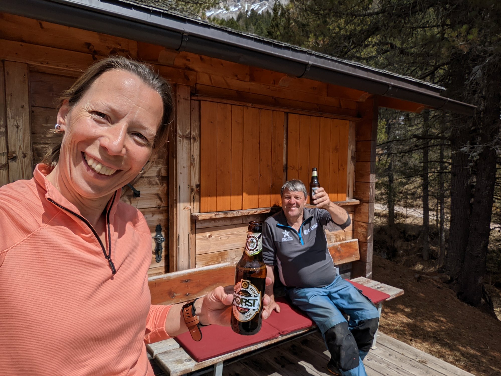 Da Franz und Gabi heute lieber chillen wollten, bin ich aufs Bike und los. Erst mal nach St. Ulrich, um mich um den Halbmarathon um den Langkofel zu kümmern. Dann habe ich den Weg hoch zur Seceda nochmal in Angriff genommen, diesmal hat es bis oben hin geklappt 😊☺️ Oben liegt immer noch etwas Schnee, aber ich kam durch. 👆 Die Troja Hütte stand ganz einsam und verlassen da, leider kein Kaiserschmarrn. Habe dann noch einen kleinen Umweg über die Pieralongia Hütte genommen, allerdings musste ich auch hier einige Stücke schieben, aber die tolle Aussicht war’s wert 😊. Dann habe ich mir noch den Weg über die Regensburger gesucht, vielleicht läuft Josef ja da rum? Neee, leider nicht…also weiter runter Richtung Erwin. Auf halben Weg seh ich Josef dann an seiner kleinen Hütte werkeln. Na da fahre ich doch gleich mol hin 😊 Josef zeigte mir sein kleines Reich …und es gab Bier und Schnaps 🤪.