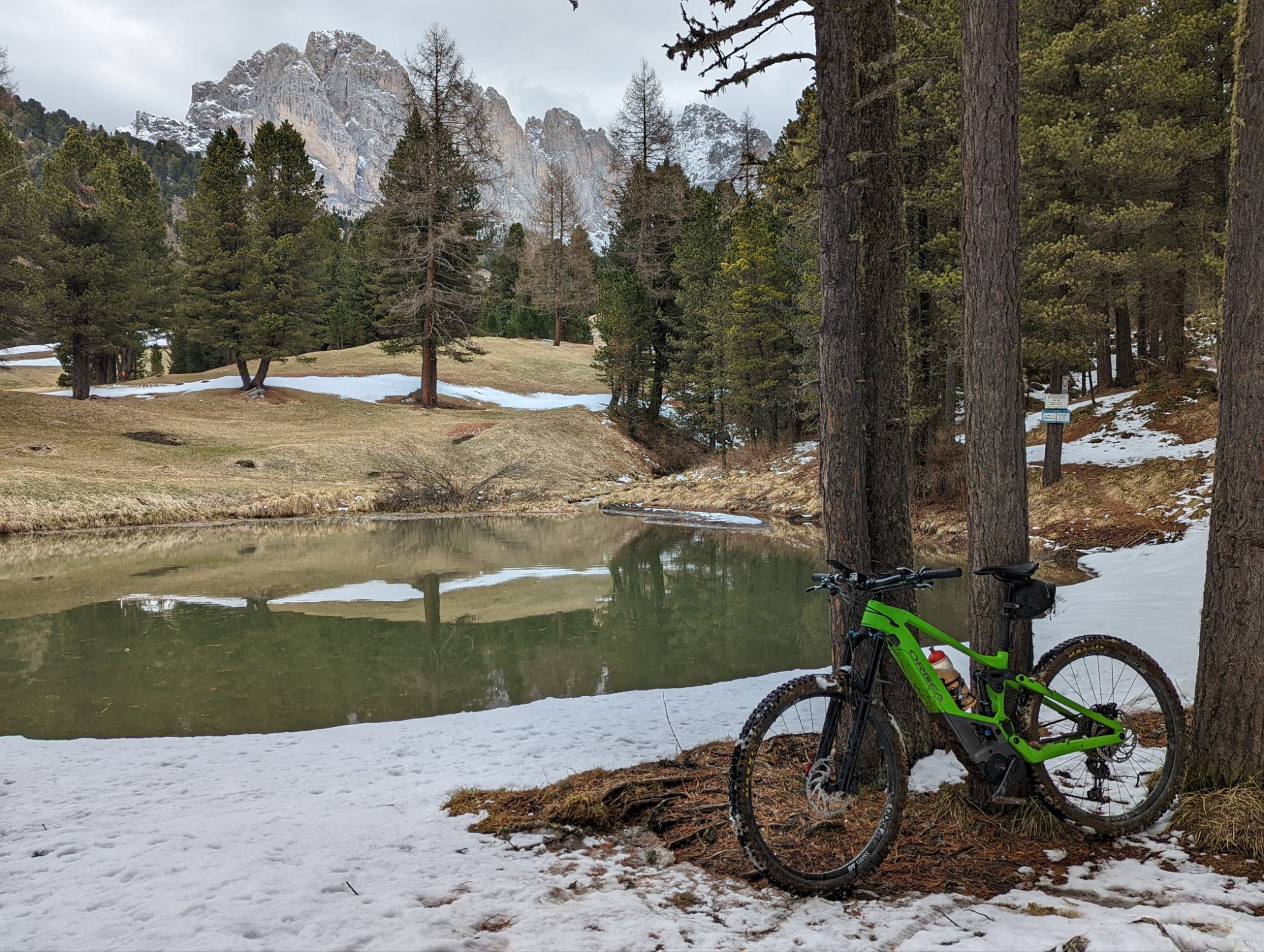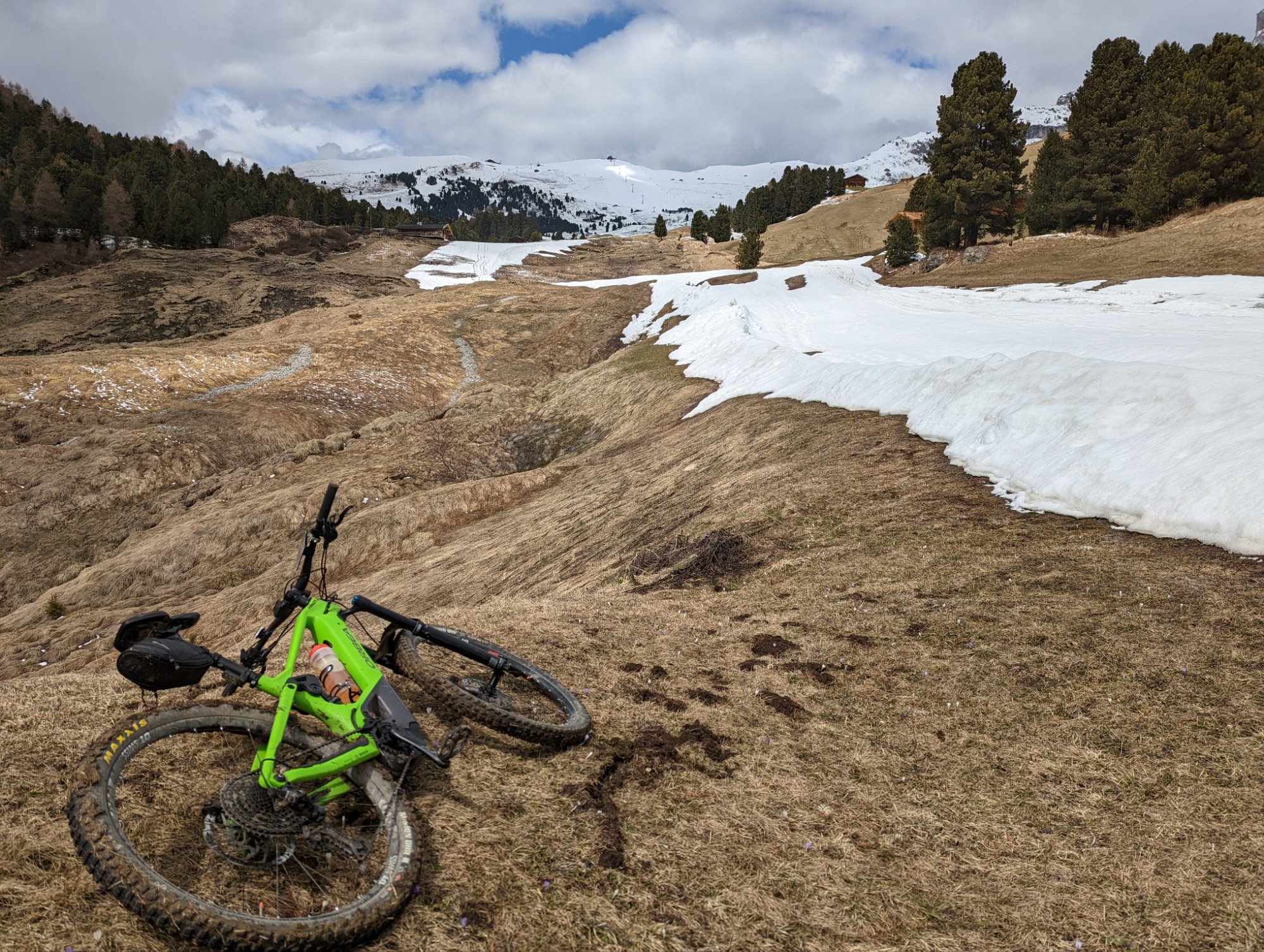 Da ich in paar Tagen ja noch so in „kleine“ Wettkampf vor mir habe, werde ich in dieser Woche keine großen Touren in Angriff nehmen. Ich habe ja noch etwas Zeit… 😄 Zum Glück 👌 Es gilt, das definitiv viel zu wenige Training der letzten Wochen, jetzt zu schonen 🙈🤣. Somit ist das E-Bike genau richtig, denn so kann ich doch noch paar Höhenmeter sammeln und mich an die Höhe wieder neu gewöhnen. Aber bei diesen steilen Wegen käme ich gar nicht mehr auf die Idee, ohne Motor mich da hoch zu quälen 🙈 Ich habe es heute aber nur auf knapp 2000 HM geschafft, dann wurde einfach der Schnee auf den Schotter-Wegen zu viel und links und rechts davon war es zu nass und schlammig. Das Bike ist mir mehrfach weggerutscht sowie durchgedreht. Da war Schieben noch die beste Option. Es war bestimmt vernünftig heute, keine Experimente zu veranstalten😬🙈… probiere ich in ein paar Tagen wieder, die Seceda hoch zu kommen. 👆