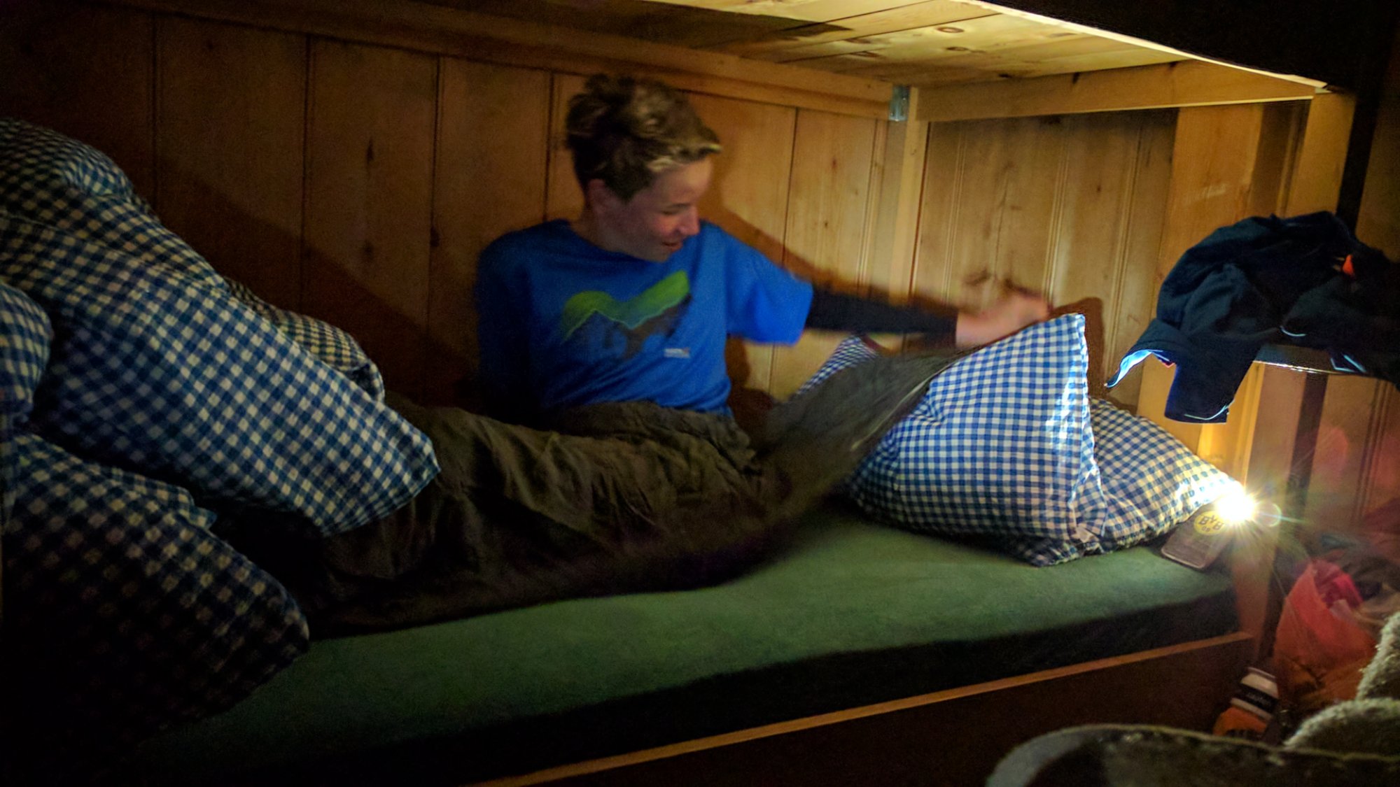 Da die 2 anderen Betten frei blieben, haben die Jungs jeweils 2 Bettdecken auf sich liegen, ich ne Bett- und Wolldecke….und mit den restlichen 4 Wolldecken hab ich das Fenster abgedichtet.