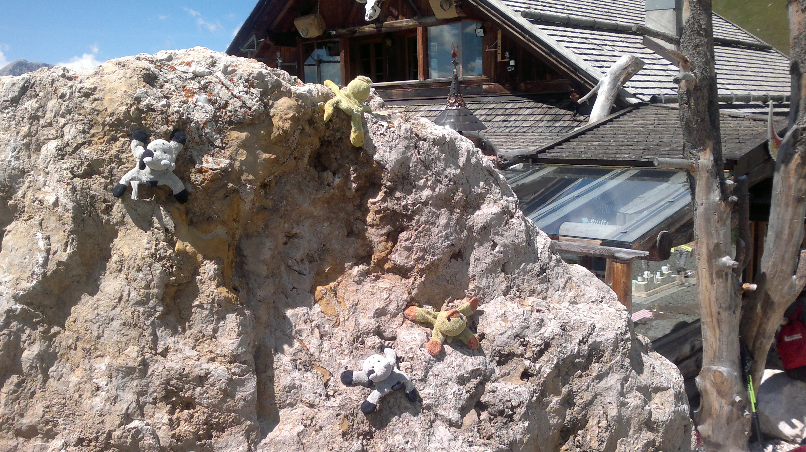 Bei wieder wunderschönem Wetter sind wir heut morgen mit der Campinoi-Bahn gestartet und sammeln vor und hinter dem Langkofel….soeben an Hütte 7 angekommen – Col Rondella -zum höchsten Punkt auf 2486 HM. Gleich laufen wir zurück zum Sella Joch-Haus und werden ganz mutig in den Schockel-Lift reinspringen um die Seite vom Langkofel zu wechseln.
